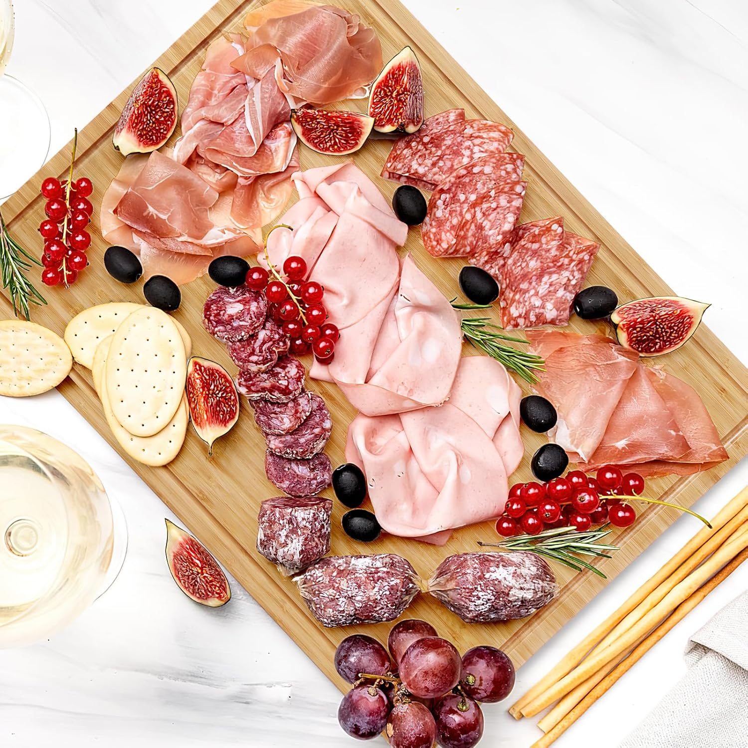 - [Extra-large Size and Versatility]: With its extra-large 24-inch size, this bamboo cutting board provides ample space for cutting, chopping, slicing, and dicing a variety of ingredients. It is ideal for preparing meat, vegetables, fruits, cheese, and other food items.