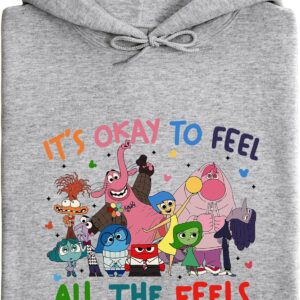 CLUTCHINK It\u2019s Okay to Feel All the Feels Hoodie \u2013 Printed Unisex Pullover Sweatshirt | Fun Cartoon Emotion Design