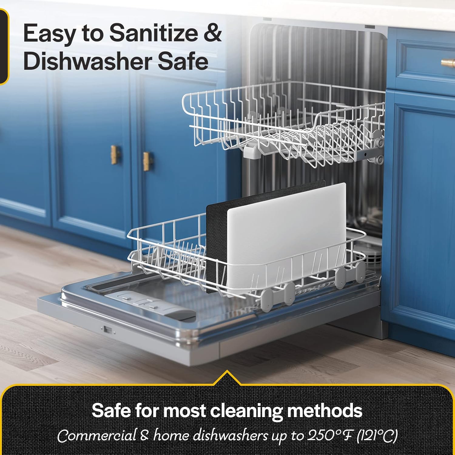 Dishwasher safe construction makes it easy to sanitize, stack, and store your plastic cutting boards for a cleaner, more convenient kitchen.