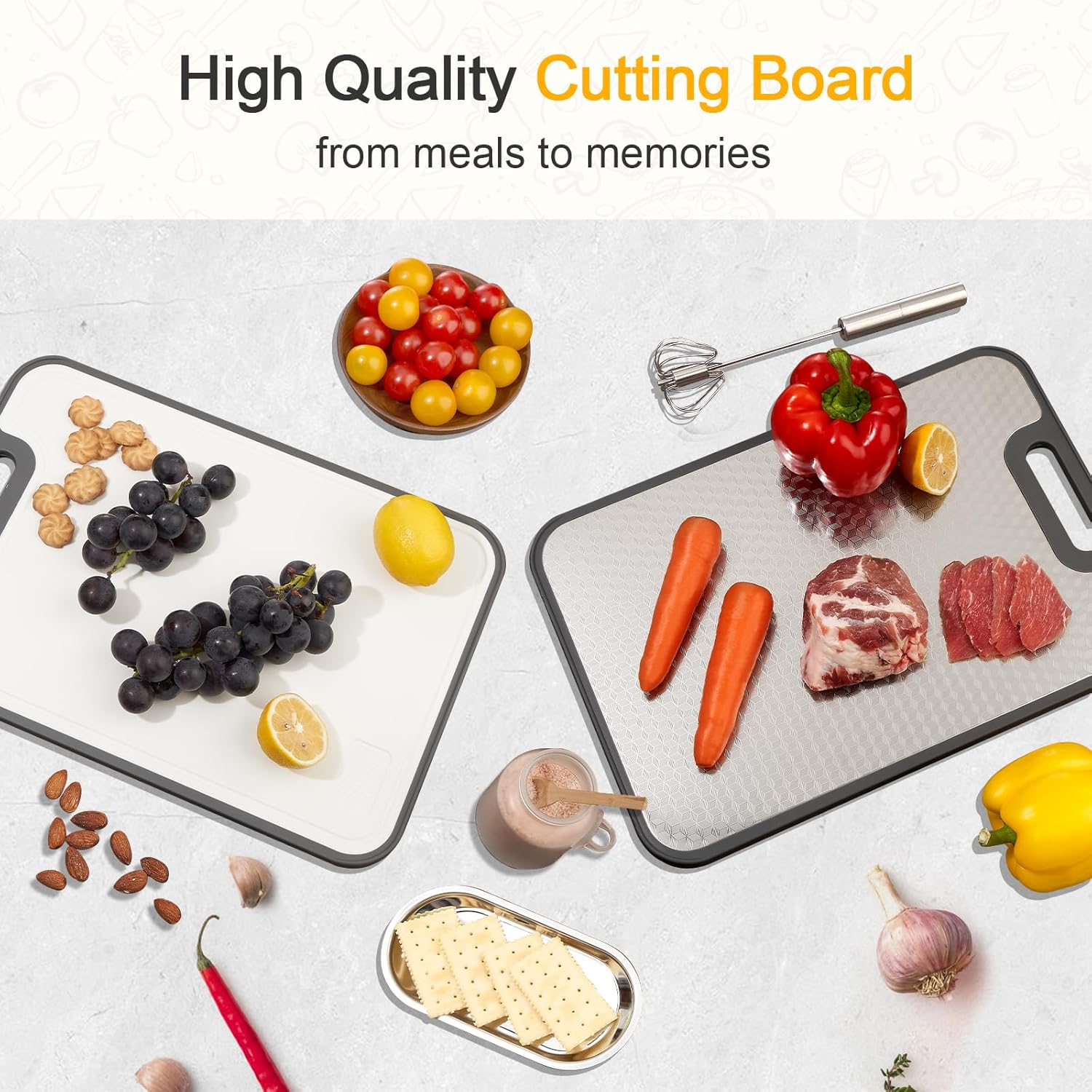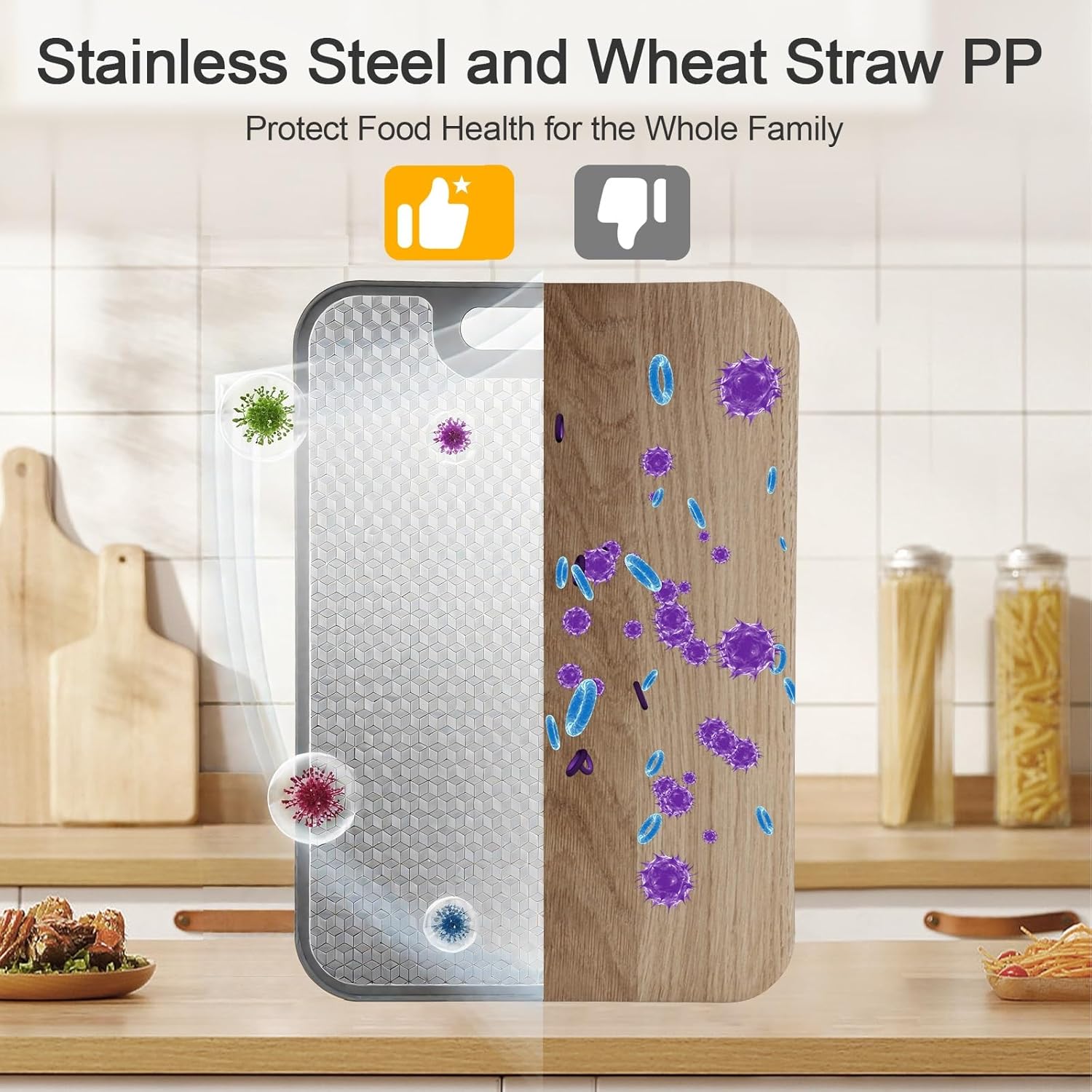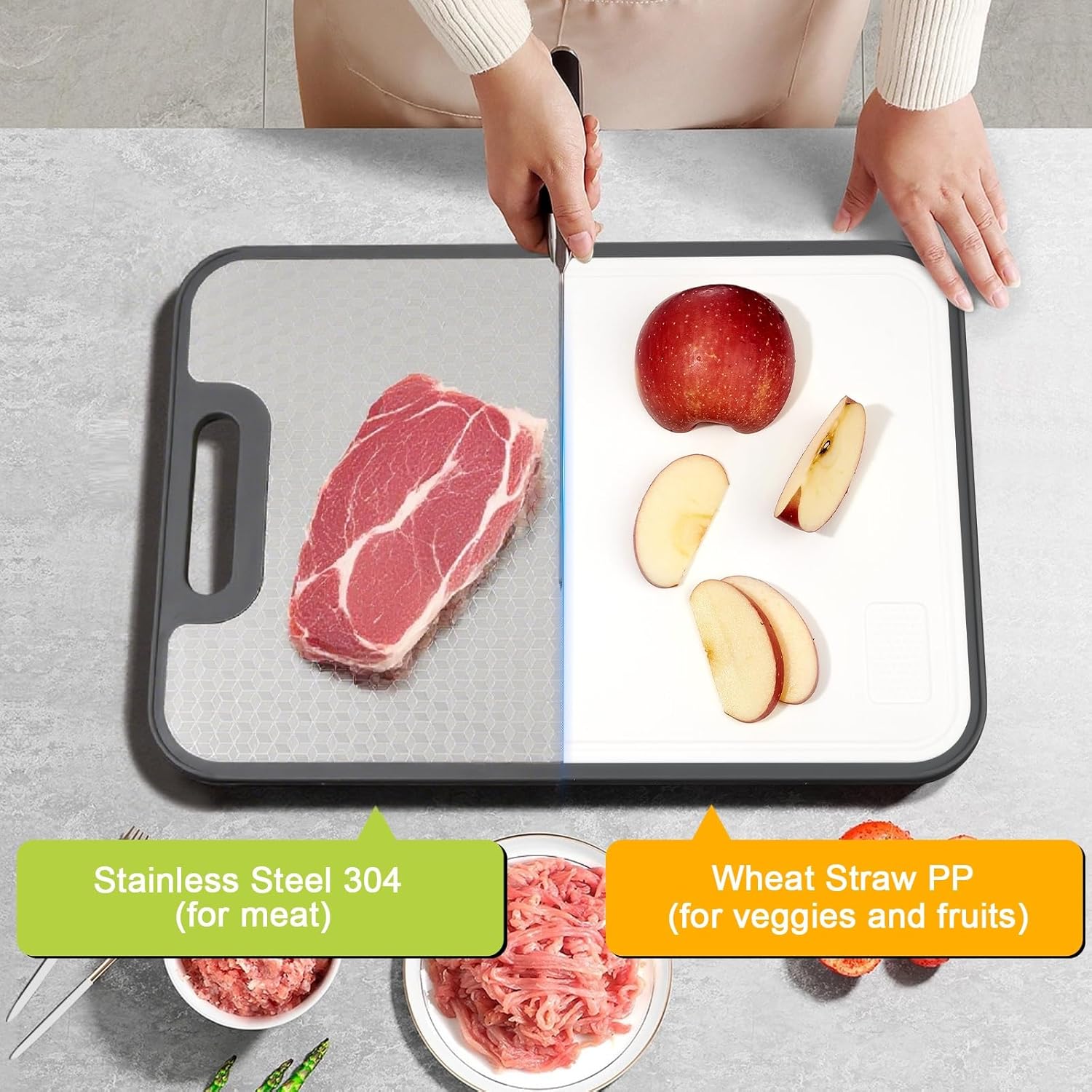 Cutting Board, Cutting Boards for Kitchen Double Sided Food Grade, Stainless Steel/Wheat Straw PP, Stainless Steel Cutting Board non toxic Chopping Dishwasher Safe Easy to Clean 15.75 * 11 Inch
