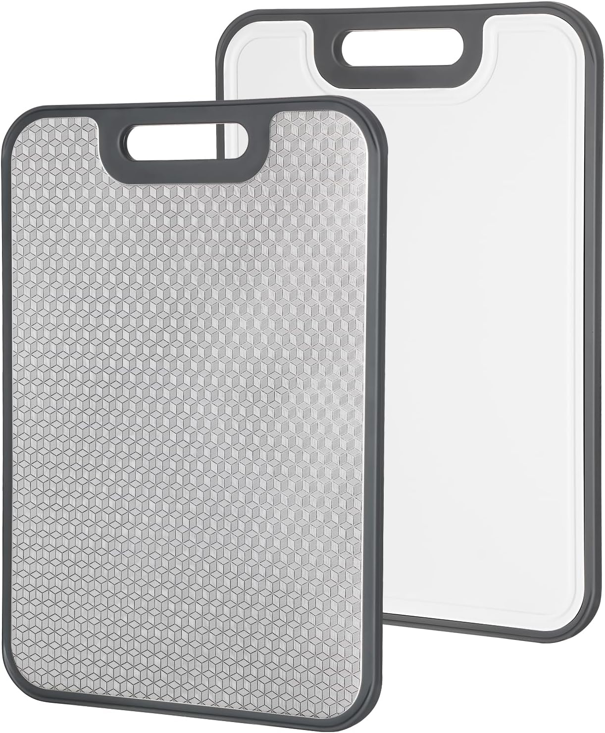 Cutting Board, Cutting Boards for Kitchen Double Sided Food Grade, Stainless Steel/Wheat Straw PP, Stainless Steel Cutting Board non toxic Chopping Dishwasher Safe Easy to Clean 15.75 * 11 Inch quantity