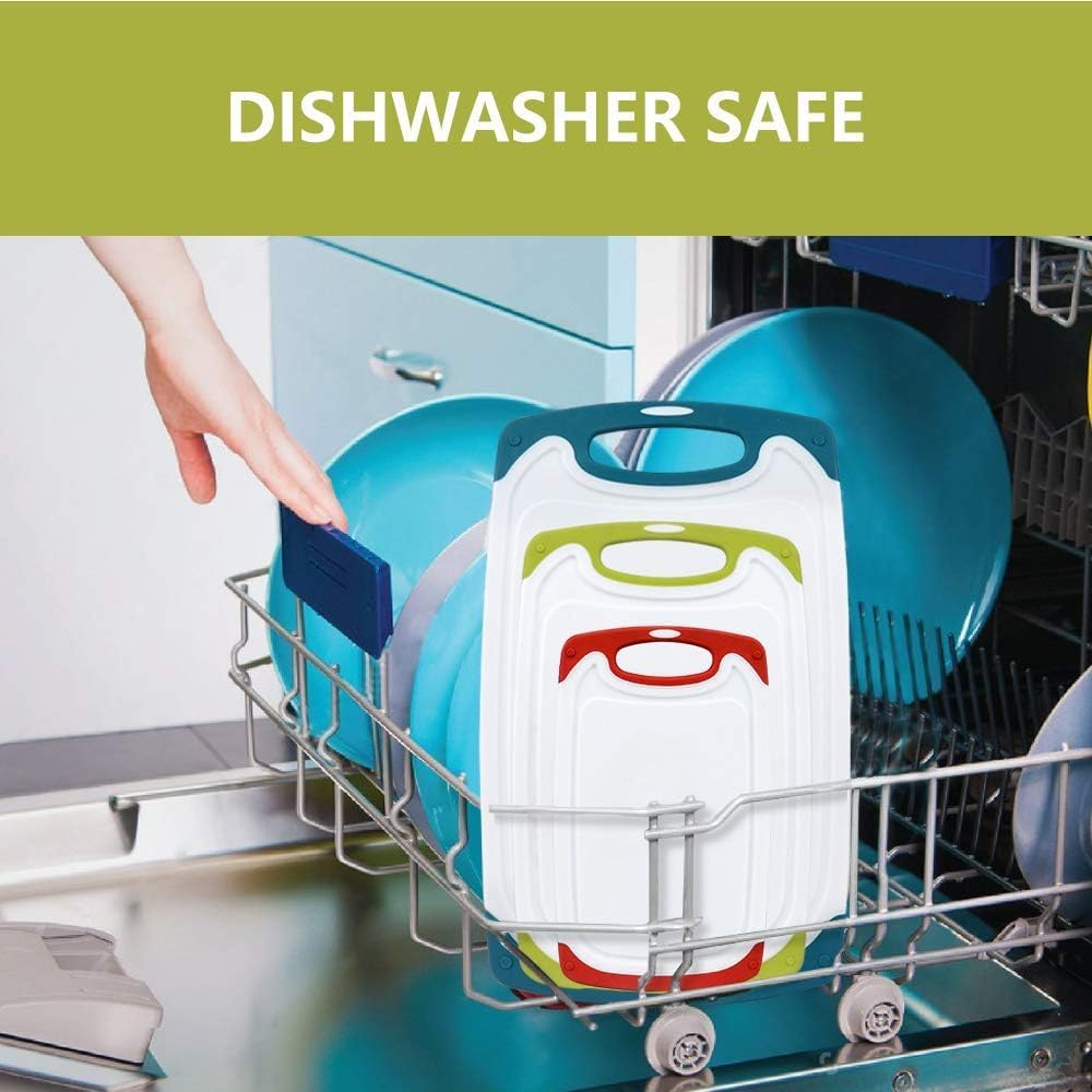 Cutting Boards for Kitchen, Plastic Chopping Board Set of 4 with Non-Slip Feet and Deep Drip Juice Groove, Easy Grip Handle, Dishwasher Safe, Green quantity