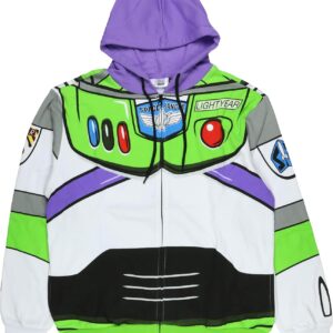 Toy Story is perhaps the most popular Disney Pixar animated series ever! it has 4 installments already out including the new Toy Story 4. This Buzz Lightyear Costume hoodie features a full front and back character design and is made of super soft 60% cotton / 40% polyester fabric blend. Perfect gift for fans of Disney or to wear to Disneyland or Disneyworld. With toys, party supplies, hats, costumes, blasters, socks and more, there is nothing you can’t get to show your love of Toy Story and Buzz Lightyear!