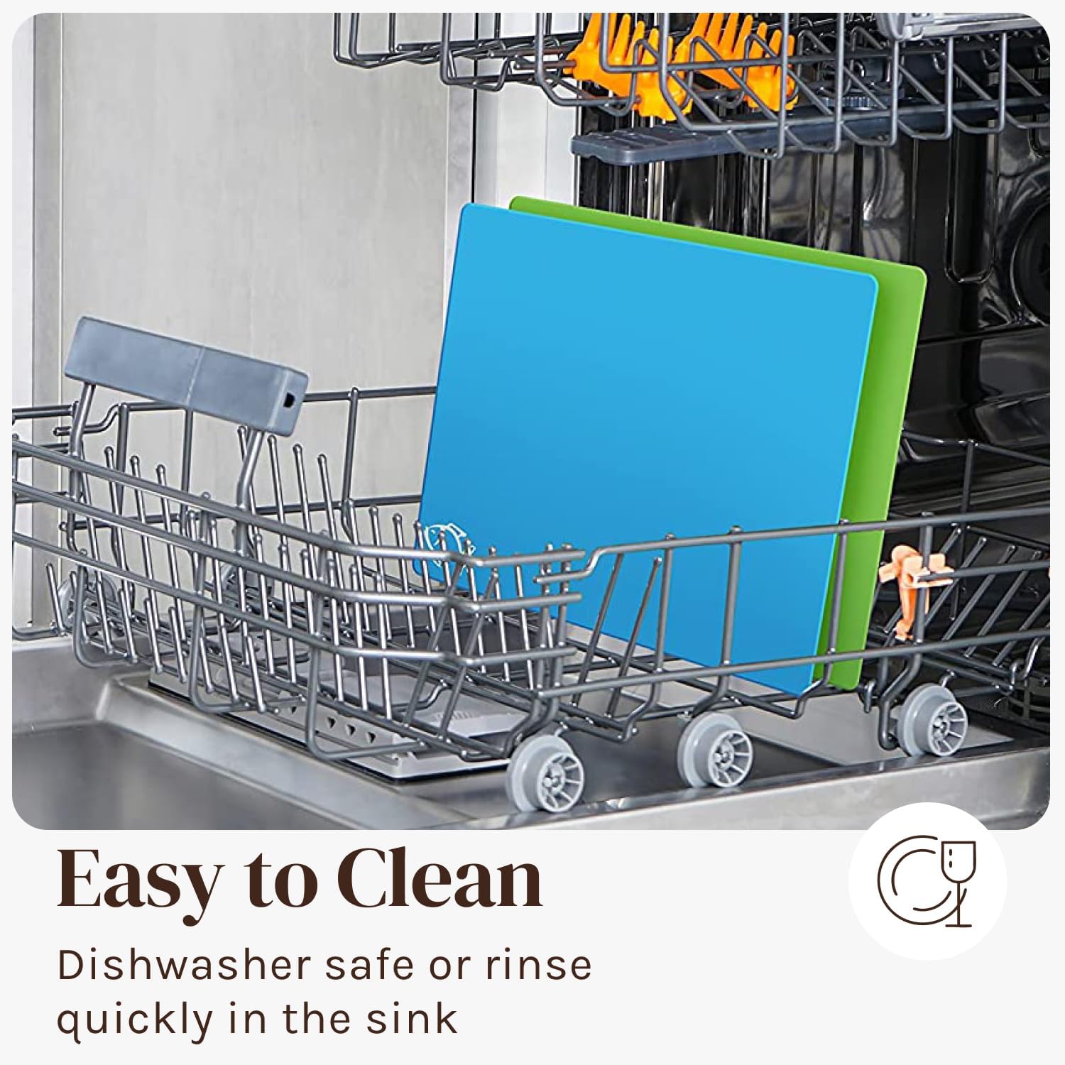 Extra Thick Flexible Plastic Cutting Board Mats with Food Icons & EZ-Grip Waffle Back, (Set of 6) Dishwasher Safe Vibrant