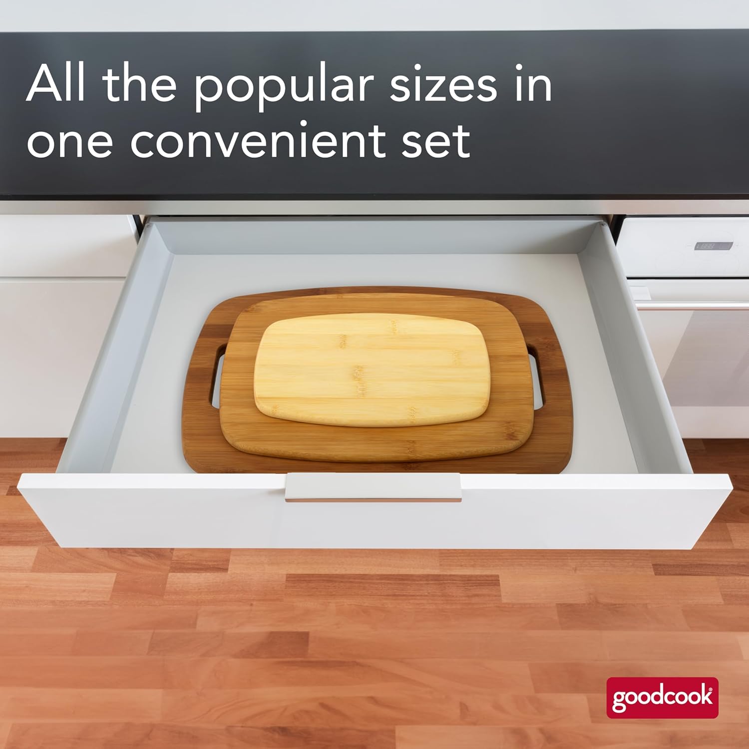 GoodCook Bamboo Cutting Board 3-Pack, Eco-Friendly Knife-Friendly Boards, 6×9-Inch, 9×12-Inch, 11×15-Inch, Durable and Moisture Resistant, Perfect for Food Prep and Serving