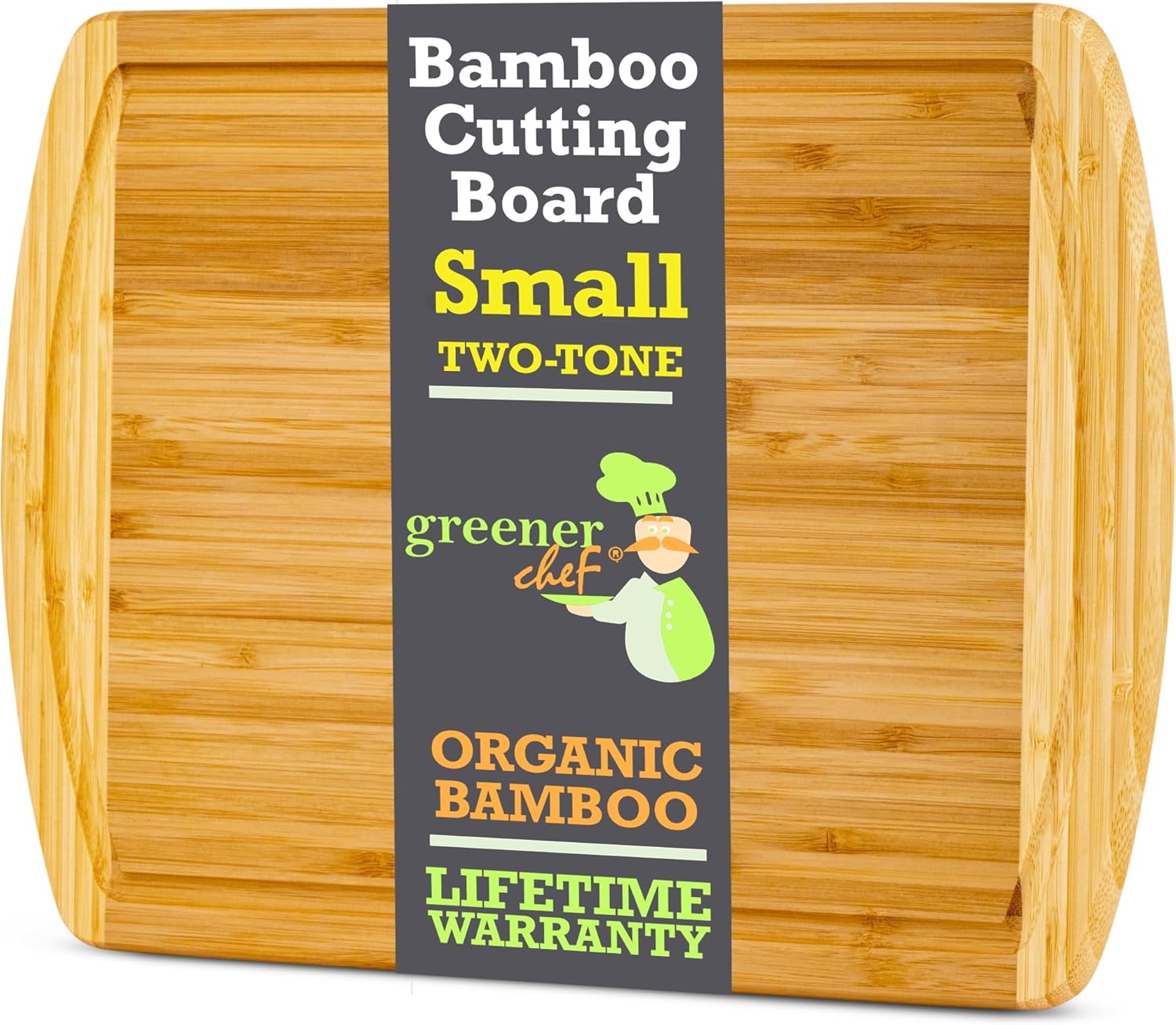 GREENER CHEF 12 Inch Small Bamboo Cutting Board with Lifetime Replacements – Small Wooden Chopping Board for Kitchen, Meat, Vegetables, Cheese, Bread, Charcuterie, and Everyday Food Prep