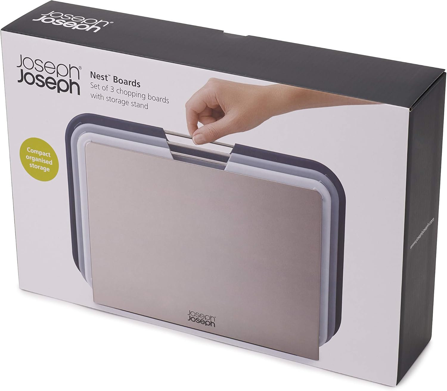 Joseph Joseph Nest 3 Piece Color Coded Cutting Board Set With Storage Stand, Regular – Grey\/Blue
