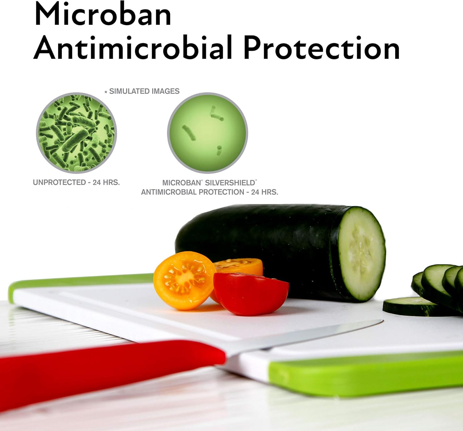 Neoflam 2 Piece Plastic Cutting Board Set, Microban Protection, Stain & Odor Free, Extra Large, BPA Free, Juice Groove, Non Slip, Dishwasher Safe, Easy Grip Handle, White Green quantity