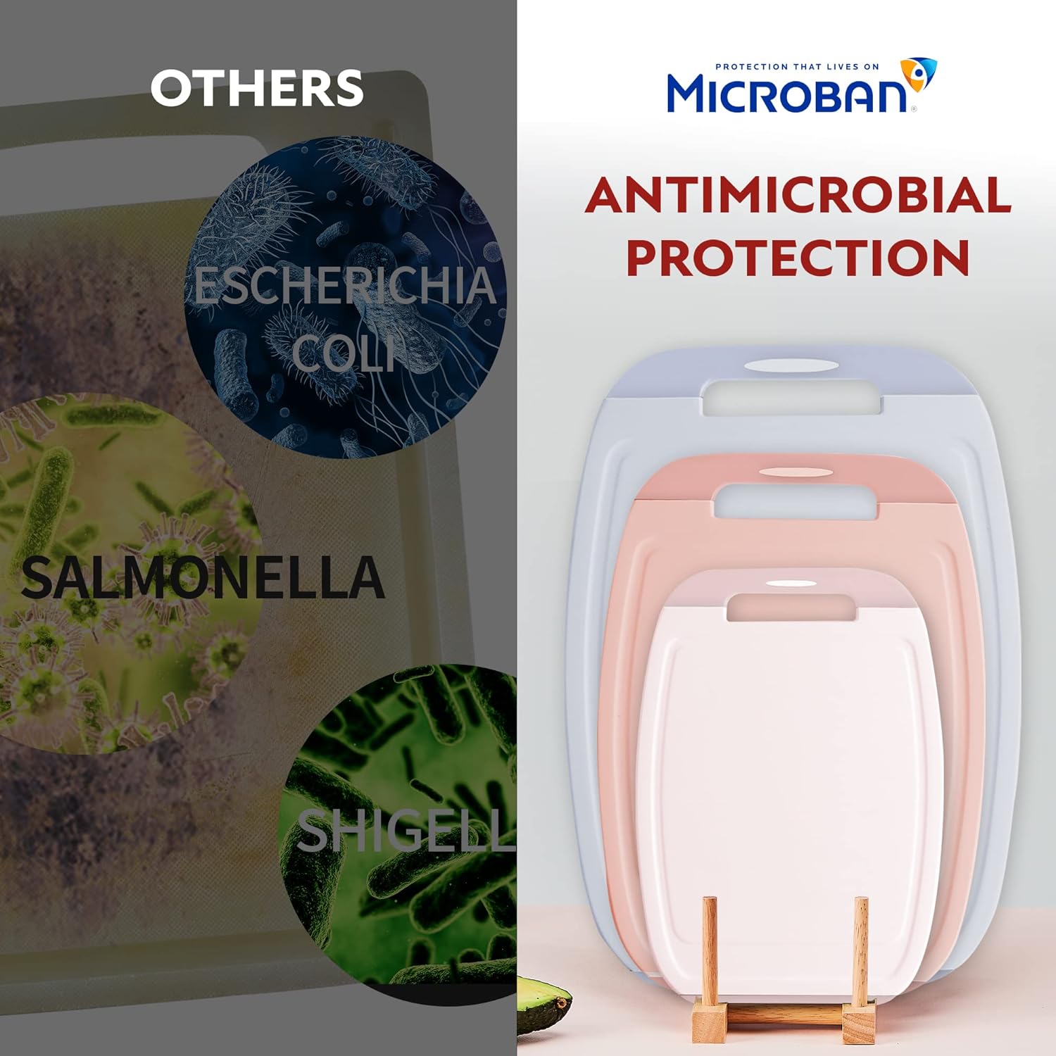 Neoflam Microban Protection Cutting Board 3 Piece Set, Stain & Odor\/BPA Free, Reversable Board, Upgraded Larger Juice Groove, Non-Slip EZ Grip Handle, Dishwasher Safe, Pastel