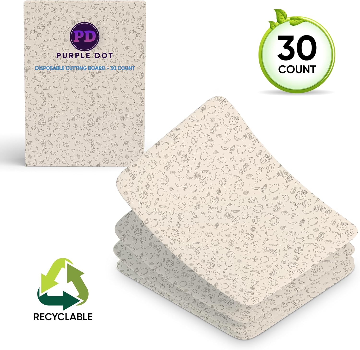 - Disposable to Save Time: Purple Dot’s single-use veggie, seafood, meat, and poultry cutting board make clean-up a breeze! No scrubbing, hot water or disinfectant needed – simply toss after use or recycle! Great for everyday use in your home’s kitchen, camping in a camper or tent, plus commercial use in food trucks and busy restaurants.