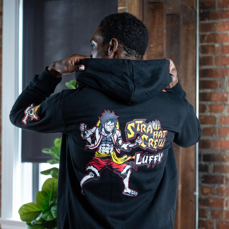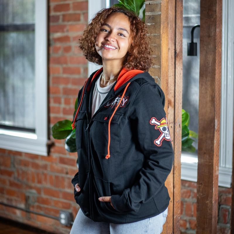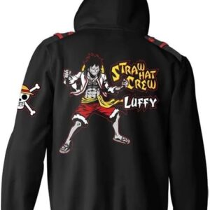 Ripple Junction One Piece Men’s Authentic Full Zip Hooded Sweatshirt w\/Chest Pockets Epaulettes Officially Licensed