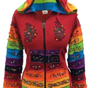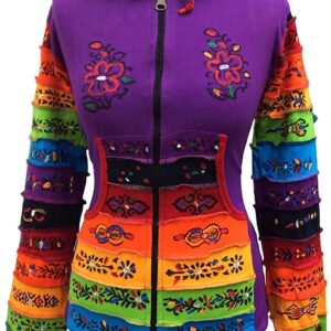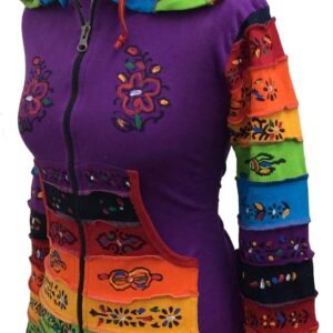 ✔ Signature Style The bold stripe sleeves and floral patchwork add a whimsical, fresh twist to a classic hoodie—making it a conversation starter from the moment you zip it up.