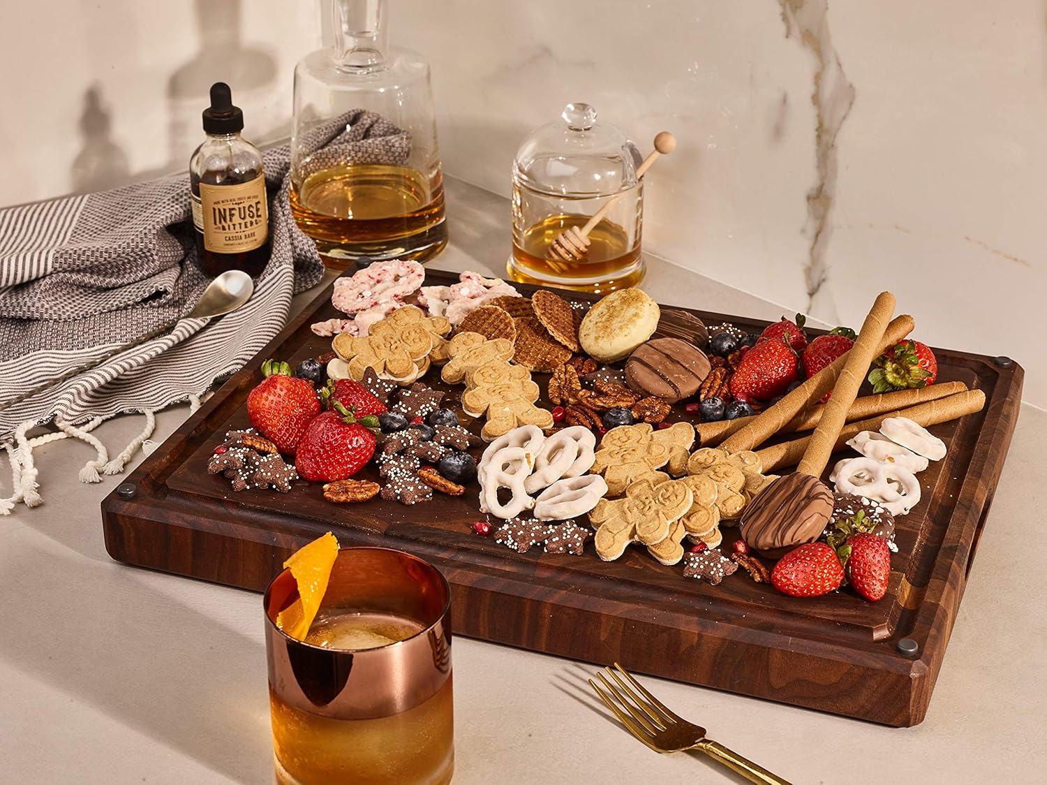 Sonder Los Angeles, Made in USA, Large Thick End Grain Walnut Wood Cutting Board with Non-Slip Feet, Juice Groove, Sorting Compartments for Kitchen 17x13x1.5 in (Gift Box Included)
