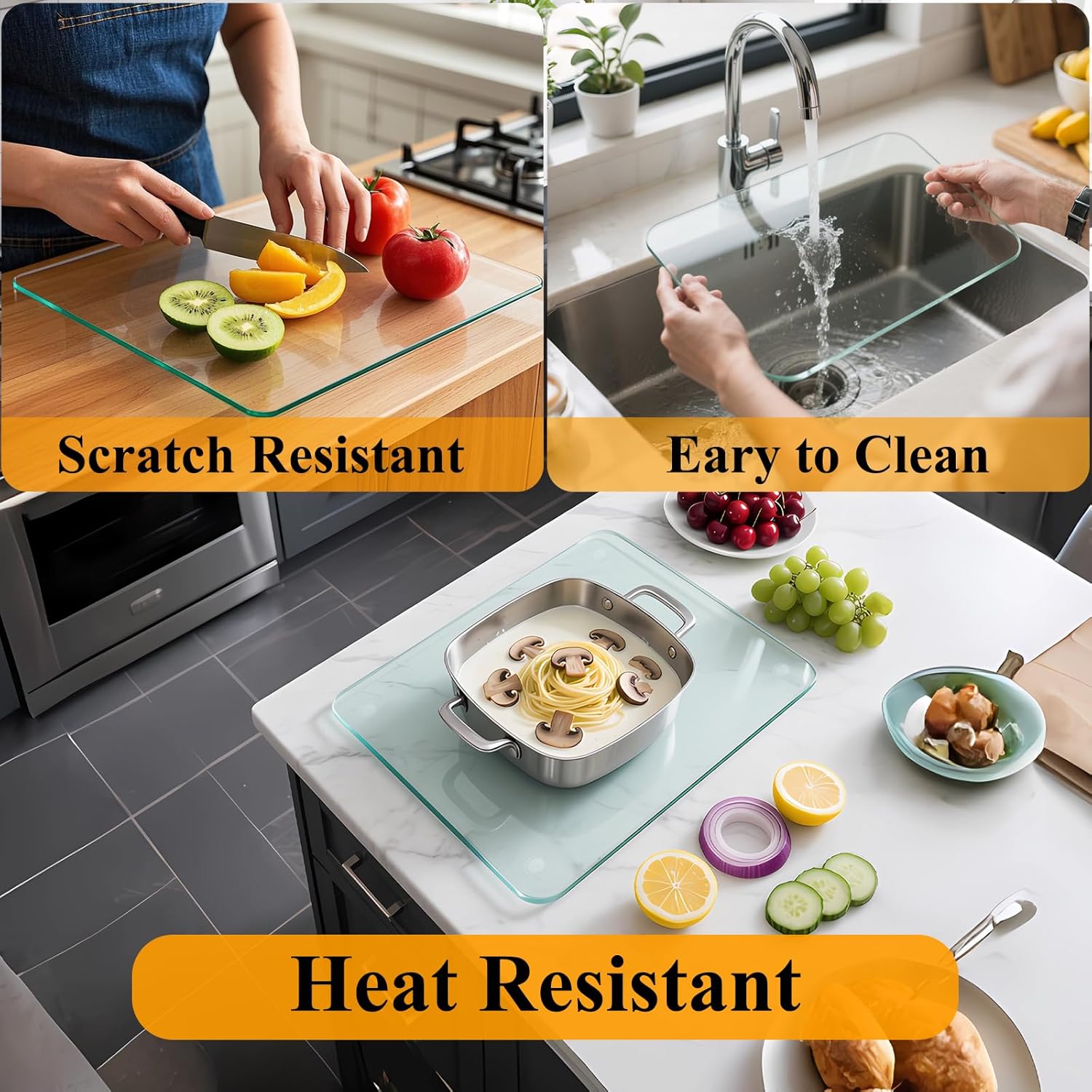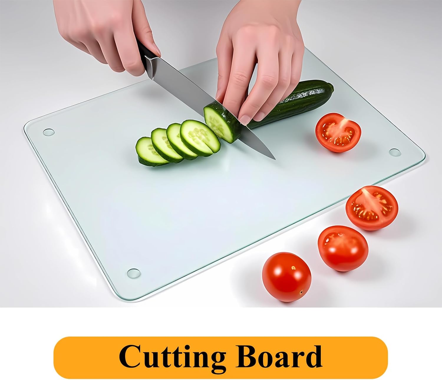 Tempered Glass Cutting Board for Kitchen, 12 x 16 Inch Clear Cutting Board with Non-Slip Feet for Countertop, Dishwasher Safe, Rounded Corner Board, Shatter, Heat & Scratch Resistant-Clear