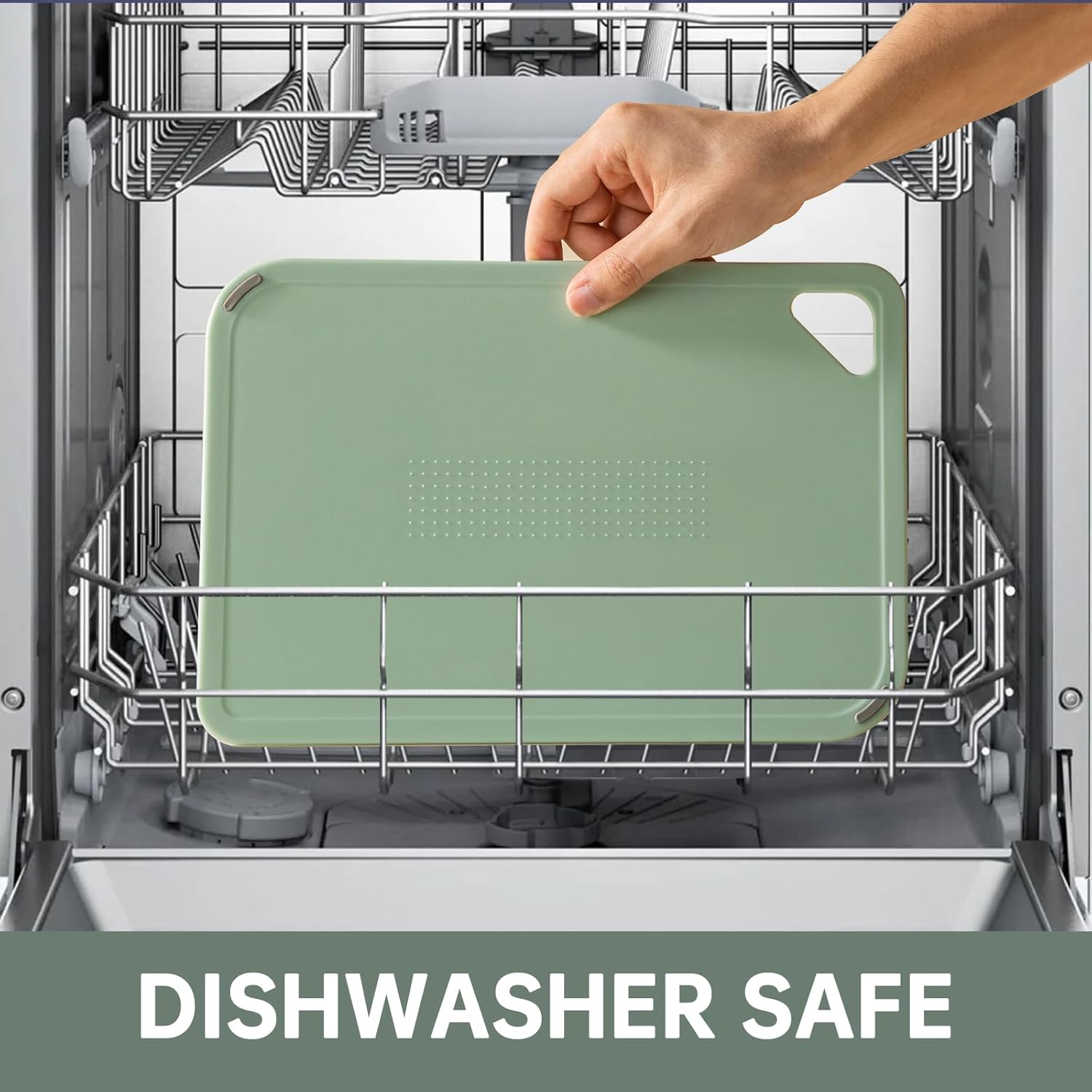 THETCHRY Plastic Cutting Board Set of 3-Cutting Boards for Kitchen BPA Free, Large-Small Chopping Boards Non-Slip for Cooking Camping Dishwasher Safe, Reversible, with Grip Handle, 15″×10″×0.6″ Green