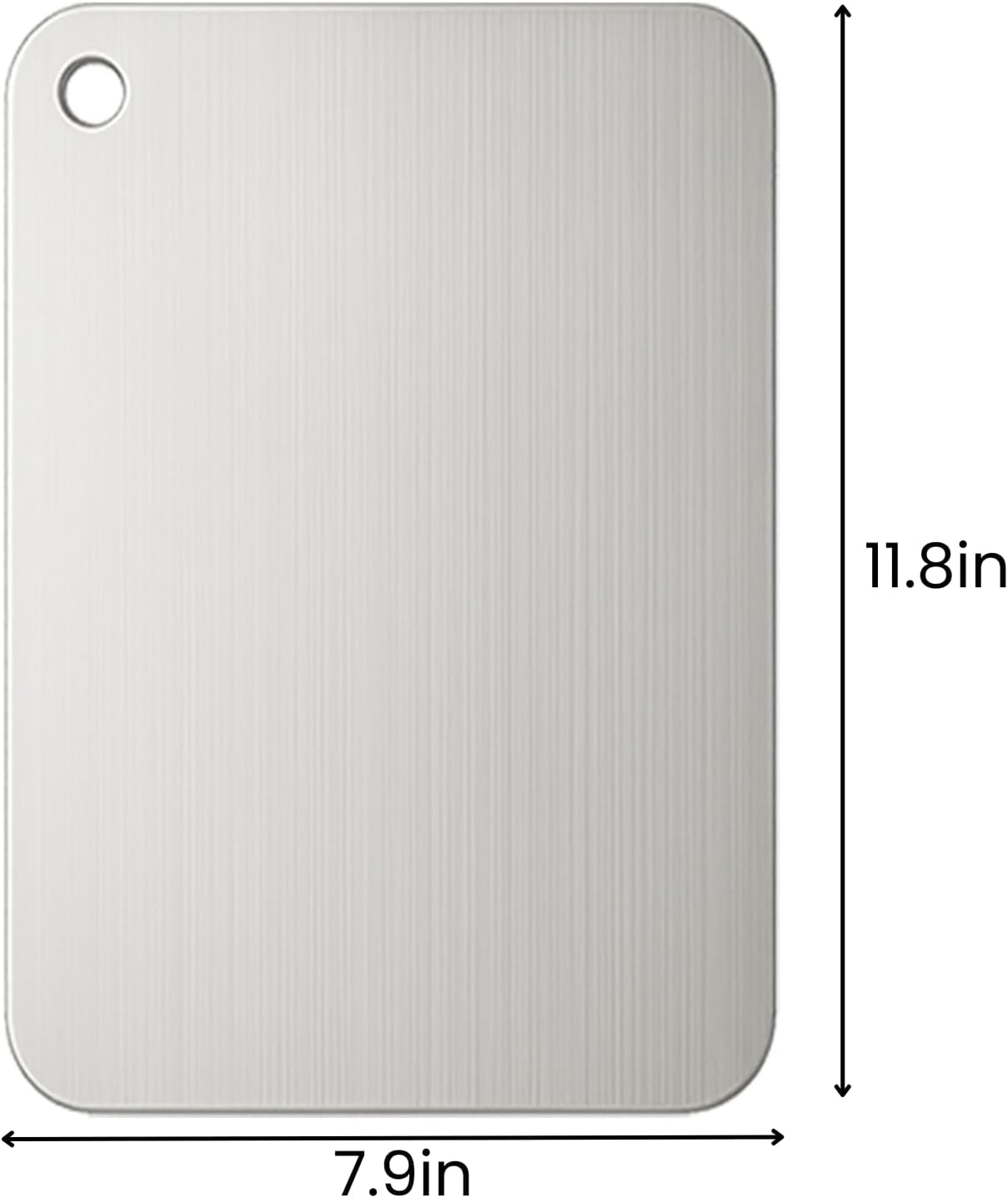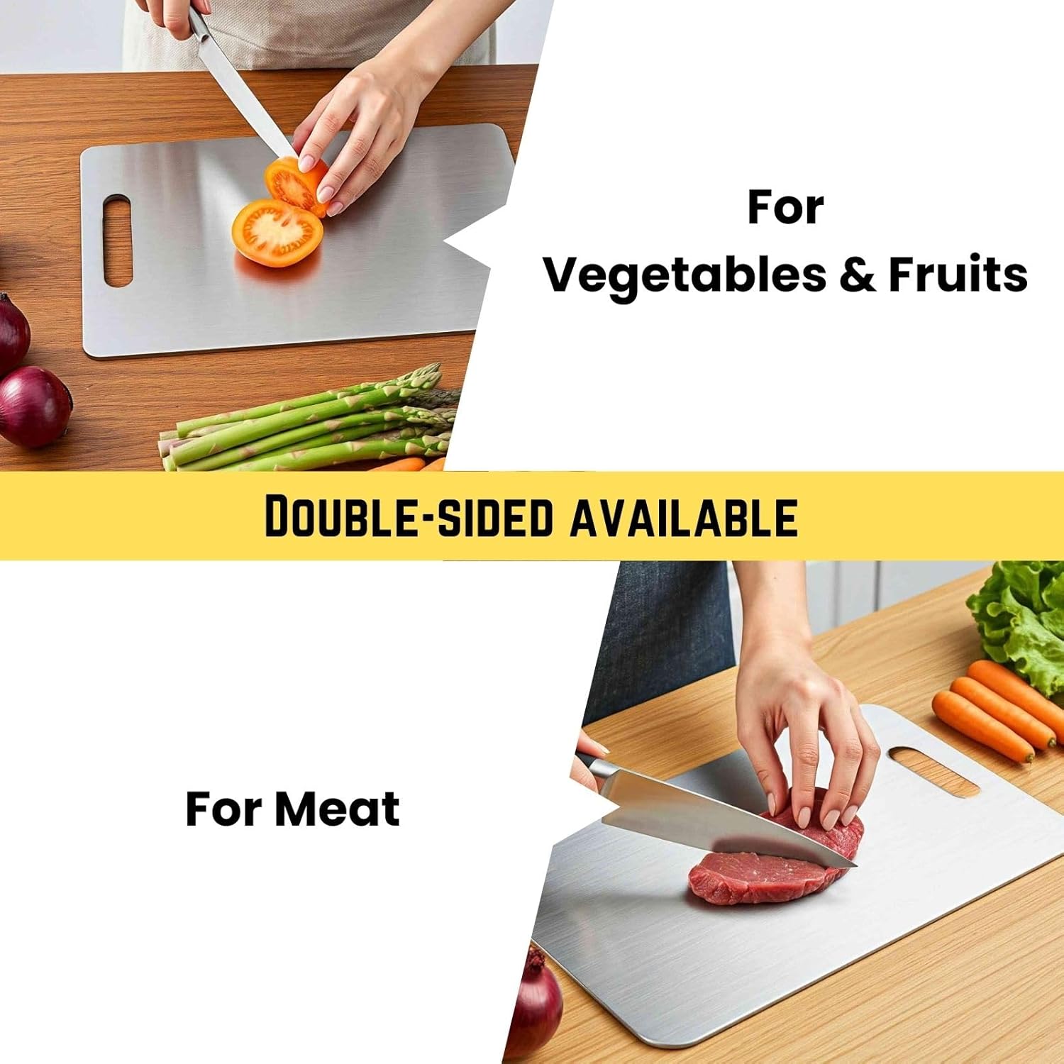 Upgrade your kitchen with this premium pure titanium cutting board, designed for unparalleled durability, hygiene. This titanium cutting board is non-porous, ensuring a food-safe cutting surface that stays clean and odor-free. The titanium chopping board is lightweight yet exceptionally strong, making it perfect for slicing vegetables, cutting meat, or even preparing seafood. Its scratch-resistant cutting surface maintains a sleek appearance, even with daily use. Whether you're a professional chef or a home cook, this double sided cutting board with titanium coating is the ultimate kitchen essential. Say goodbye to outdated kitchen tools and embrace a more hygienic and sustainable lifestyle with this healthy odorless cutting board.
