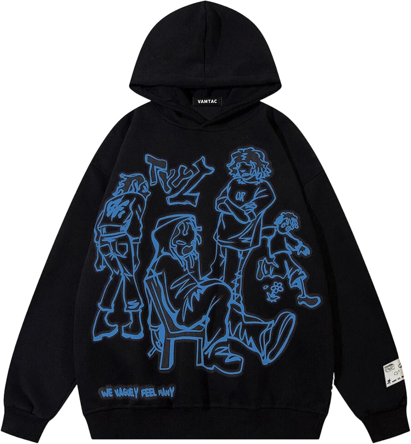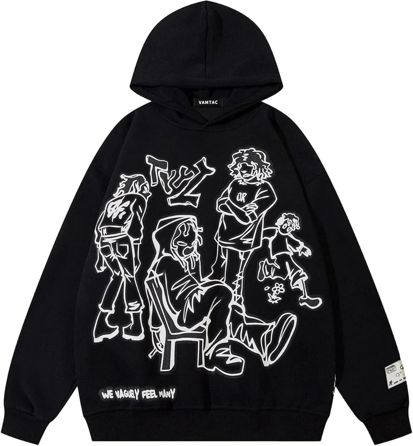 Vamtac Mens Graphic Hoodies Y2k Cute Pullover Oversized Fashion Streetwear Casual Hooded Sweatshirt Unisex Tops